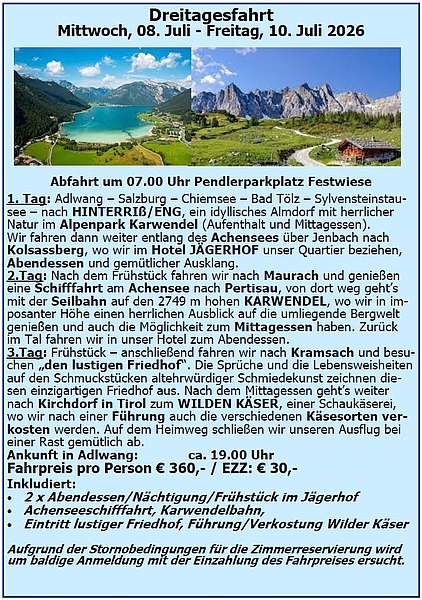 am Mittwoch, 6. Mai / Abfahrt um 08.00 Uhr / Festwiese